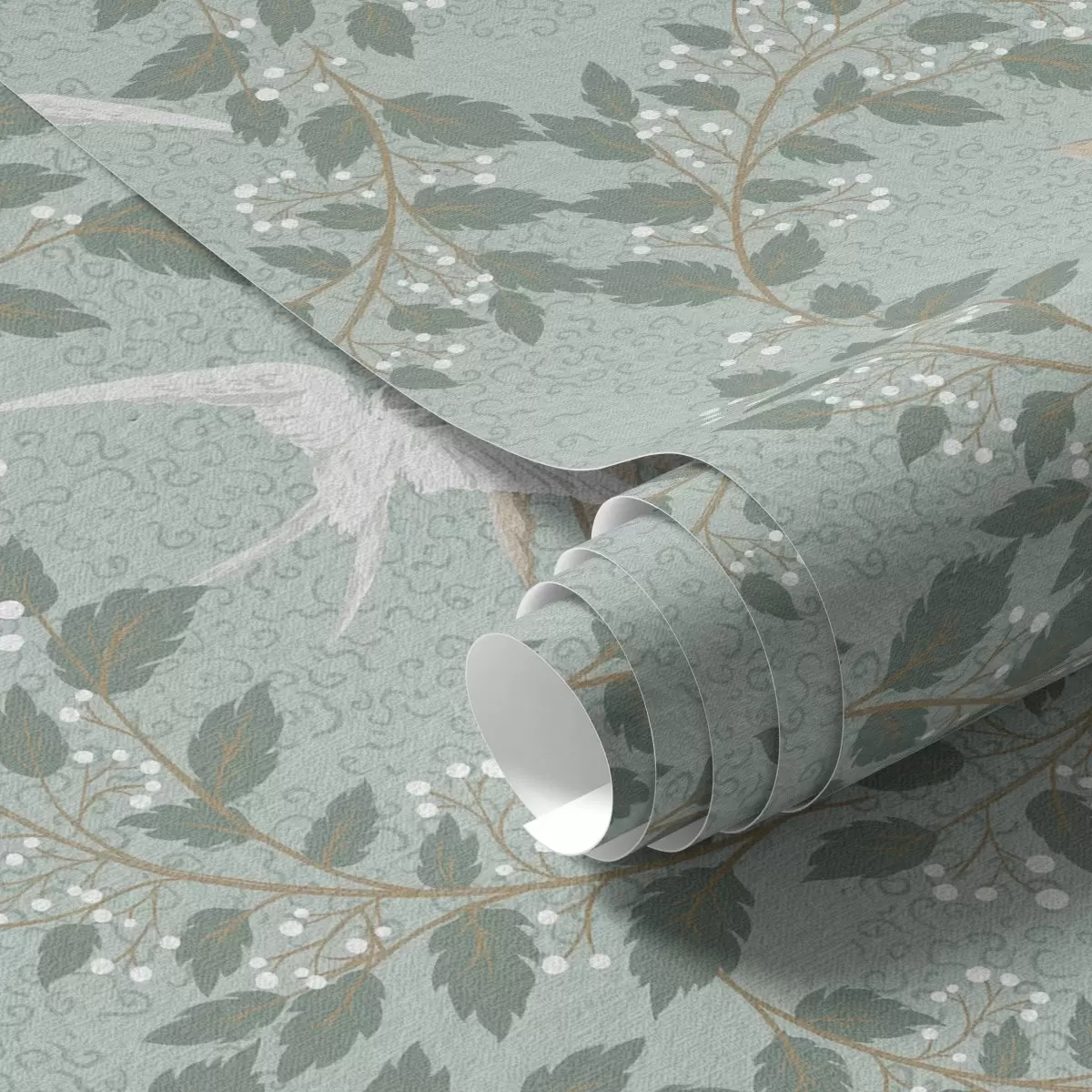 Wallpapers Branches with white berries and birds on a green background No. a00731