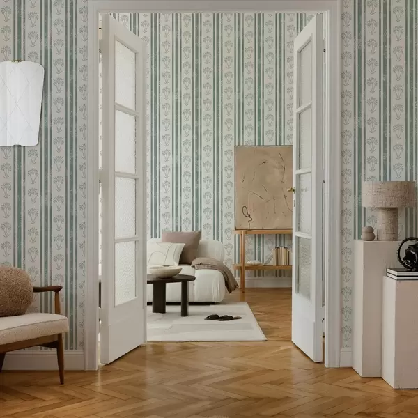 Wallpapers Ribbon pattern with flowers in green shades No. a00732