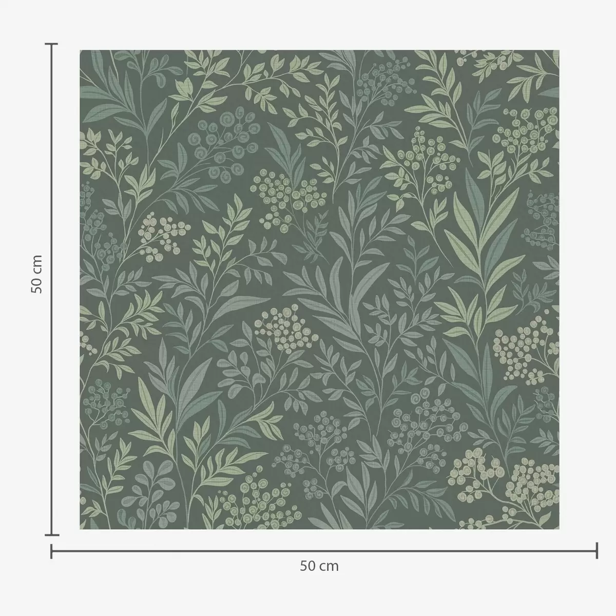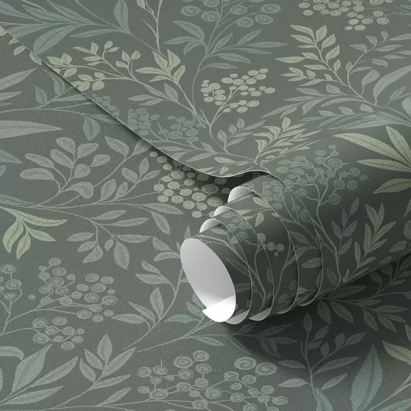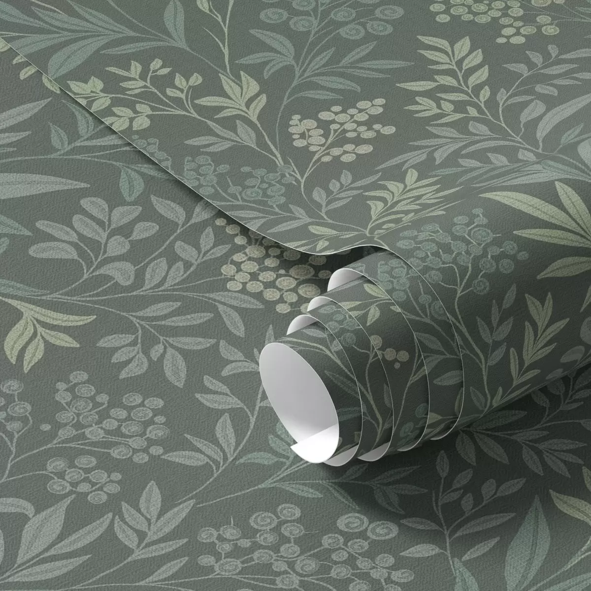 Wallpapers Emerald grasses and berries, fine botanical pattern No. a00740