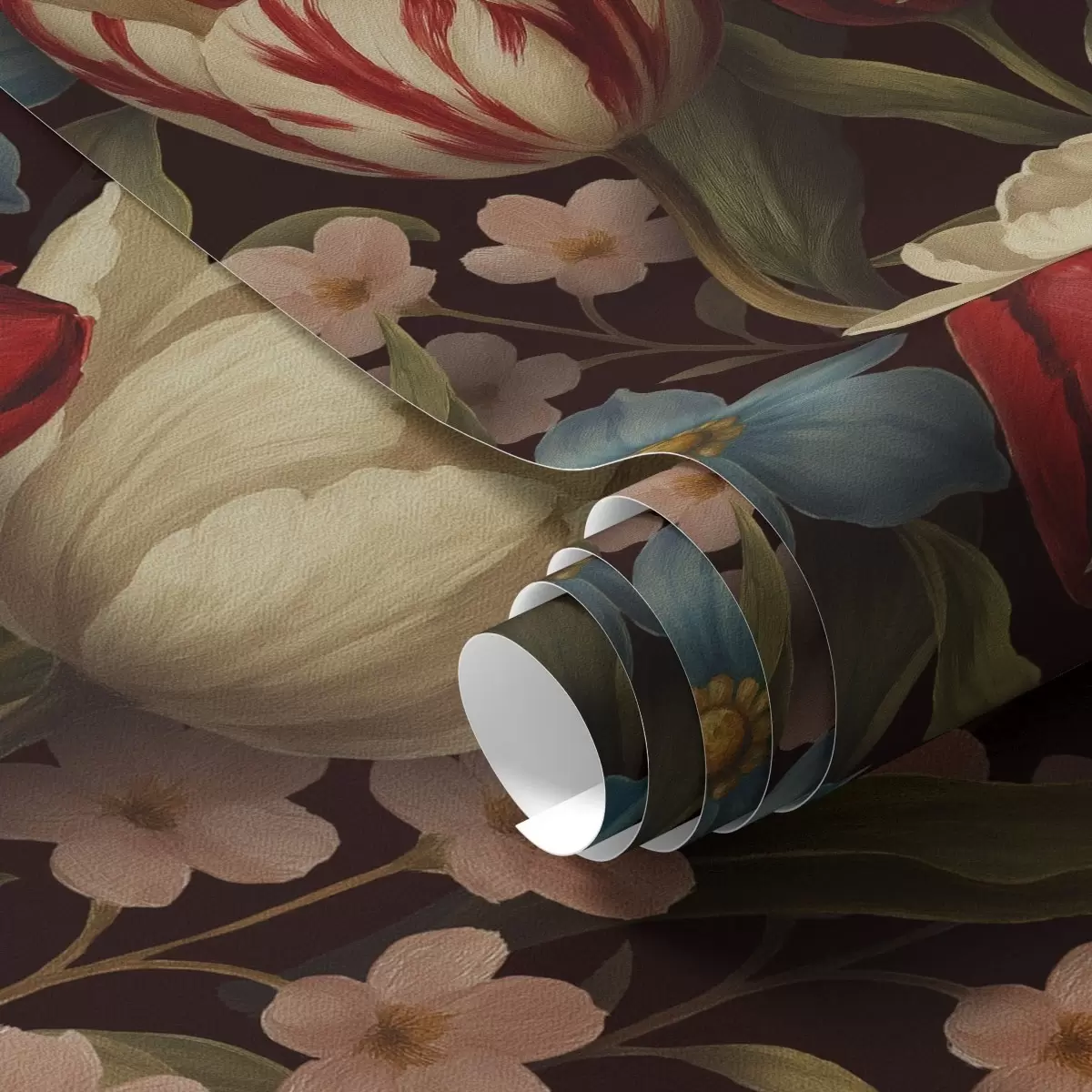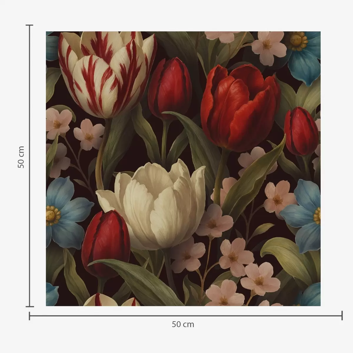 Wallpapers Bright tulips and blue flowers on dark background No. a00746