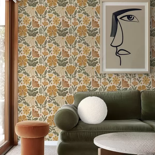 Wallpapers Stylized flowers in warm tones with hearts No. a00752