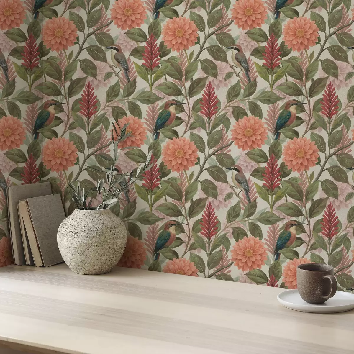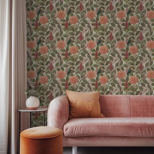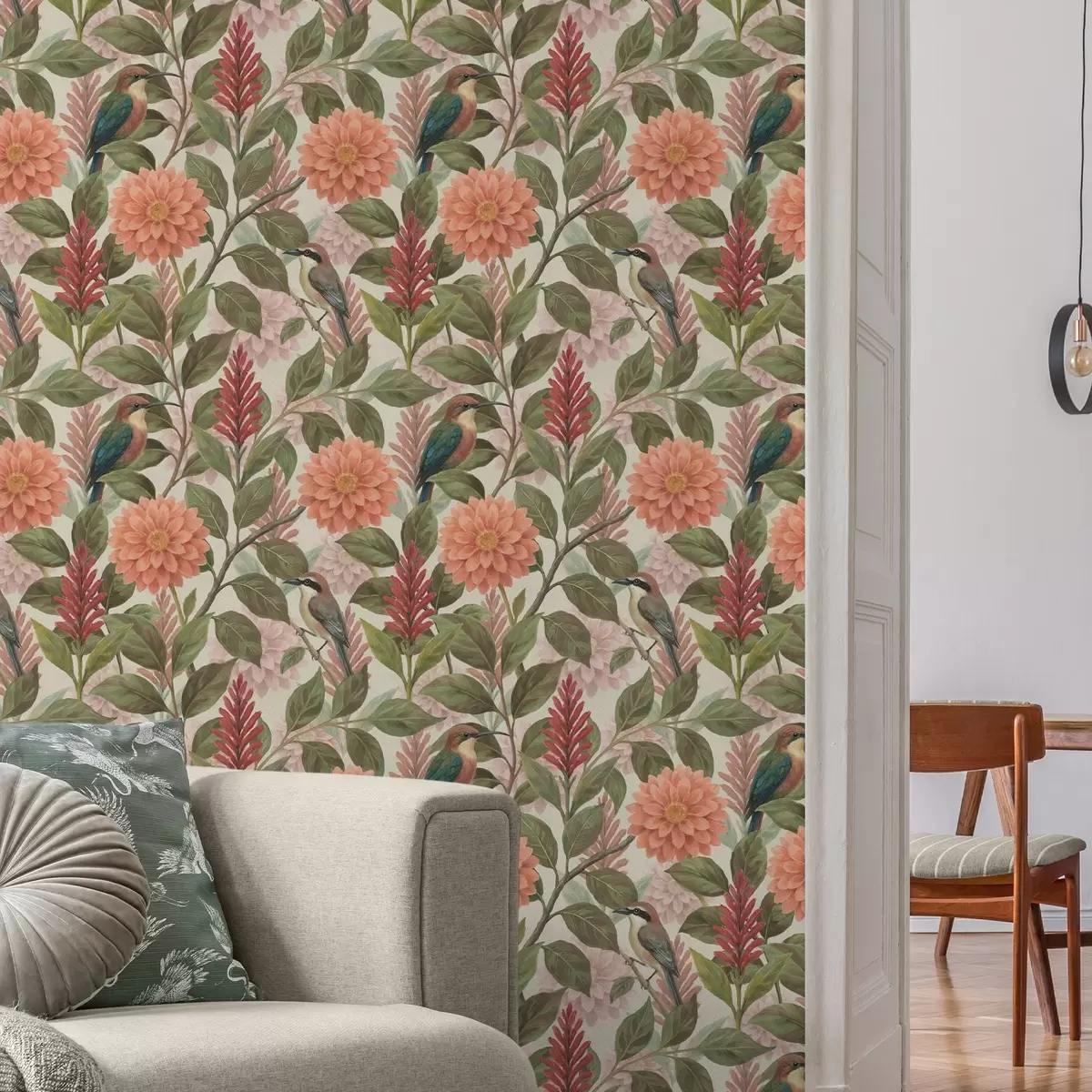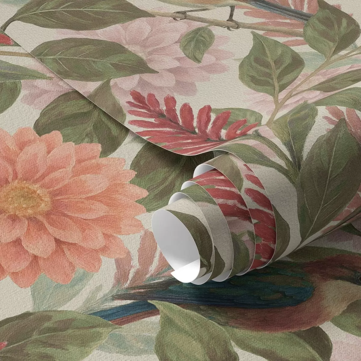 Wallpapers Birds among flowers and leaves in warm tones No. a00753
