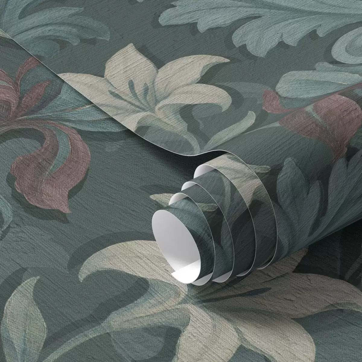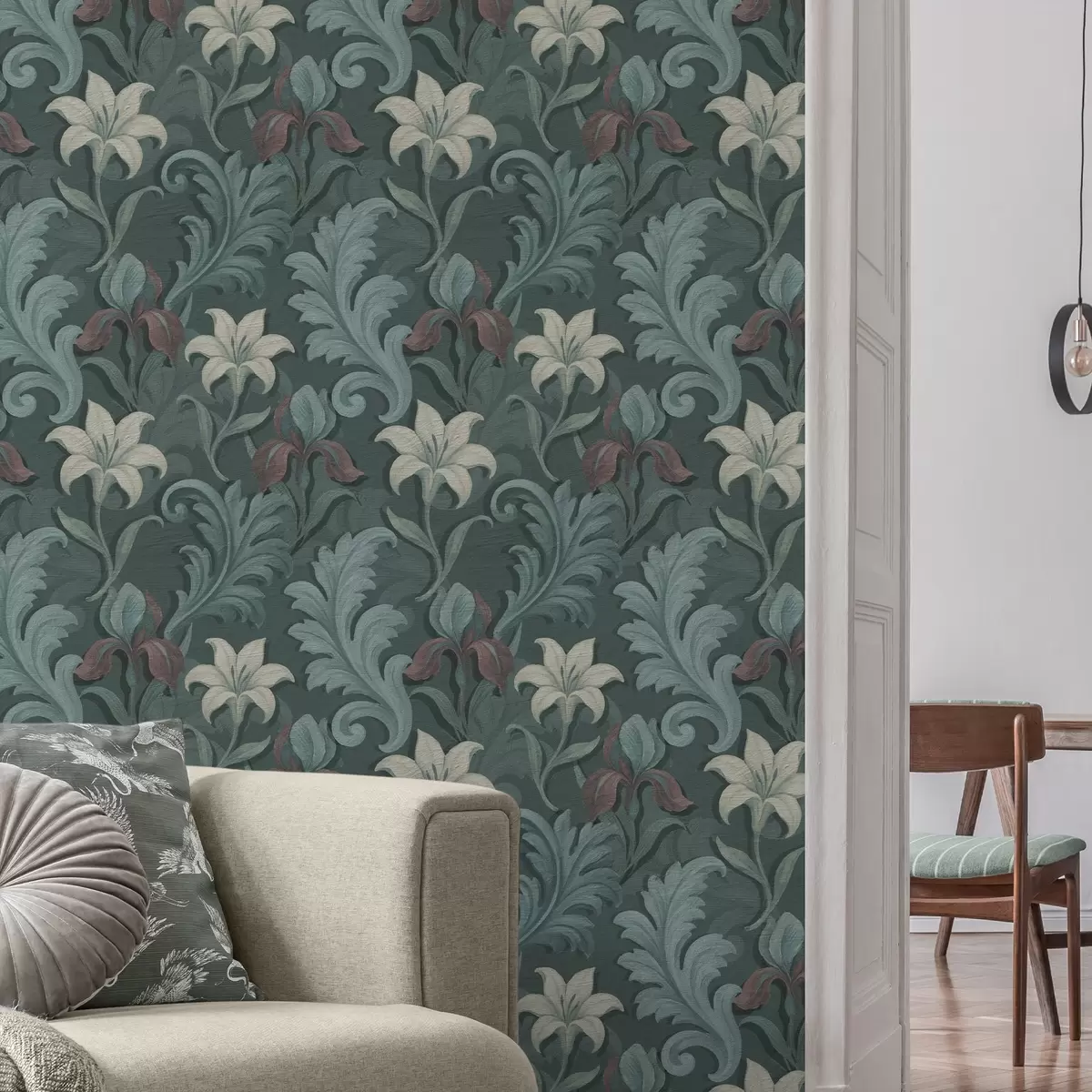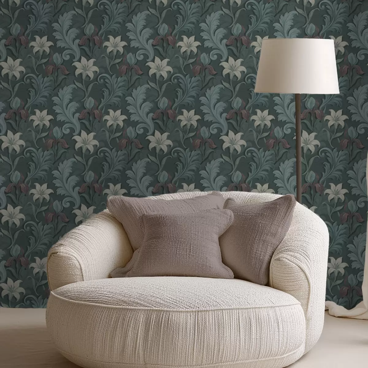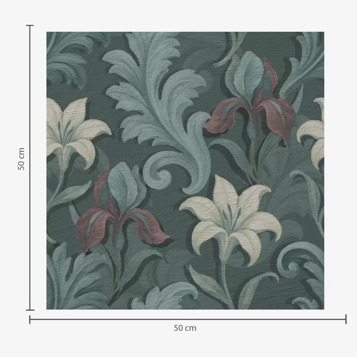 Wallpapers Dark green background with irises and decorative leaves No. a00755