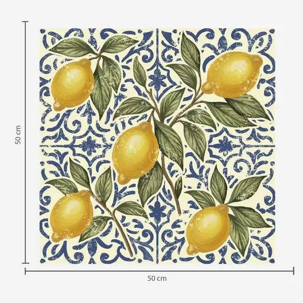 Wallpapers Lemon branches with blue ornamental background No. a00763