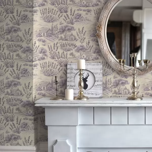 Wallpapers Lavender fields and houses in pastel tones No. a00765
