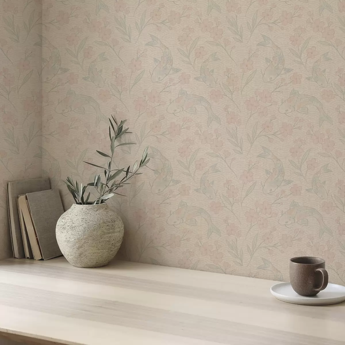 Wallpapers Carps among flowers in soft beige-pink shades No. a00766
