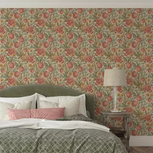 Wallpapers Vintage tulips and asters, textured cream ground No. a00773