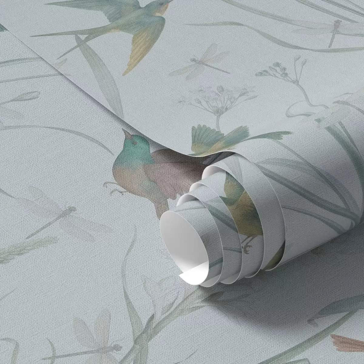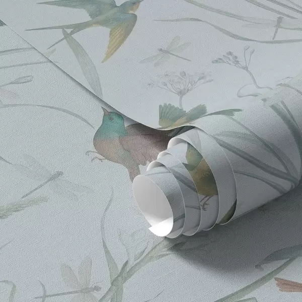 Wallpaper Birds among meadow grasses on gray-blue ground a00776