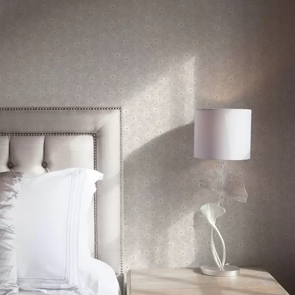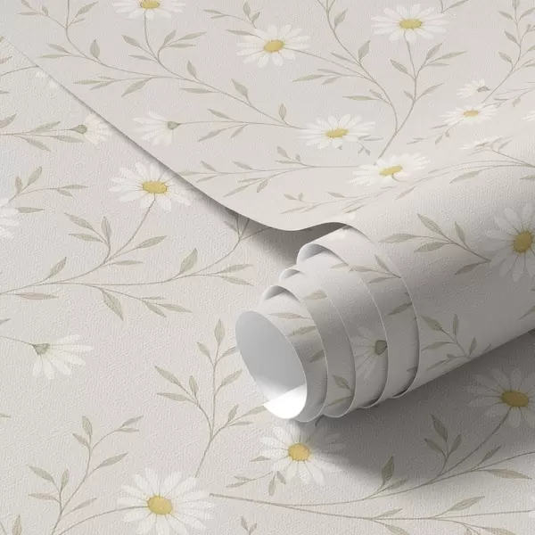 Wallpaper Tiny daisies on twigs, warm beige a00777