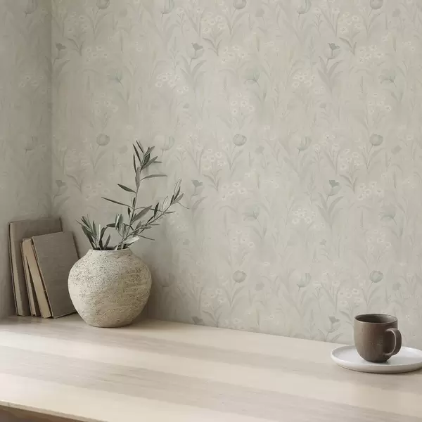 Wallpapers Gentle meadow with tulips and daisies, pastel sage No. a00779