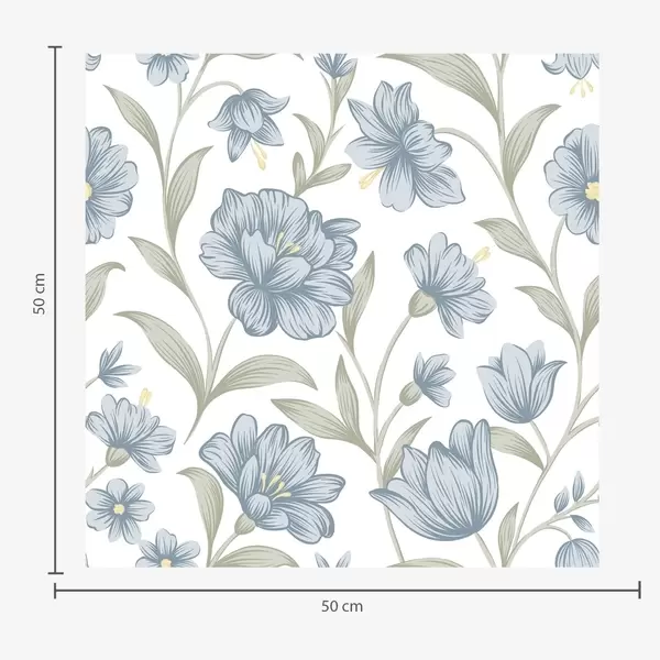 Wallpapers Dusty blue flowers with olive leaves on white No. a00780