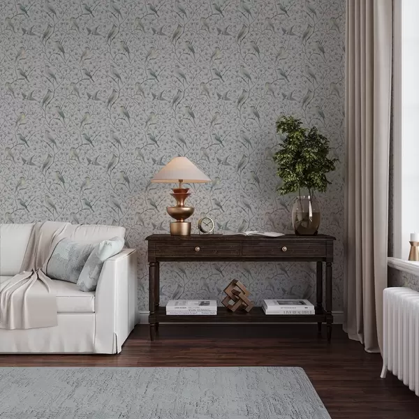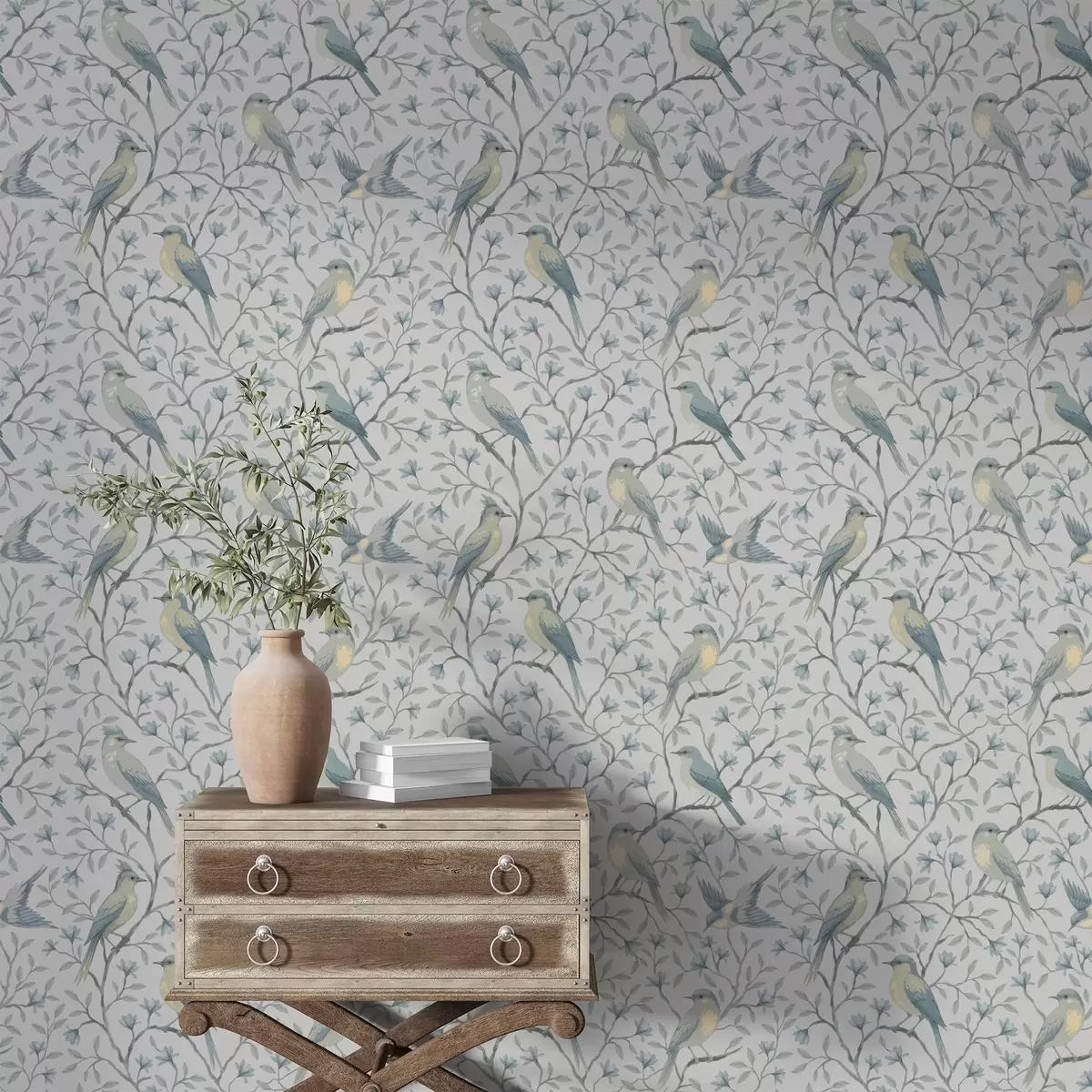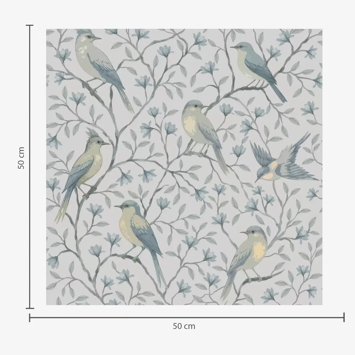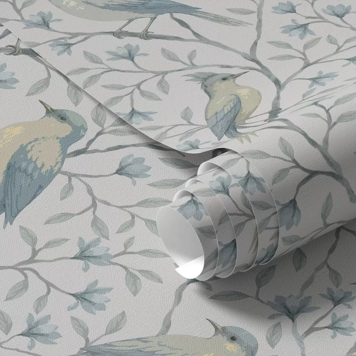 Wallpapers Birds on branches, gray-blue scheme No. a00782
