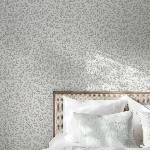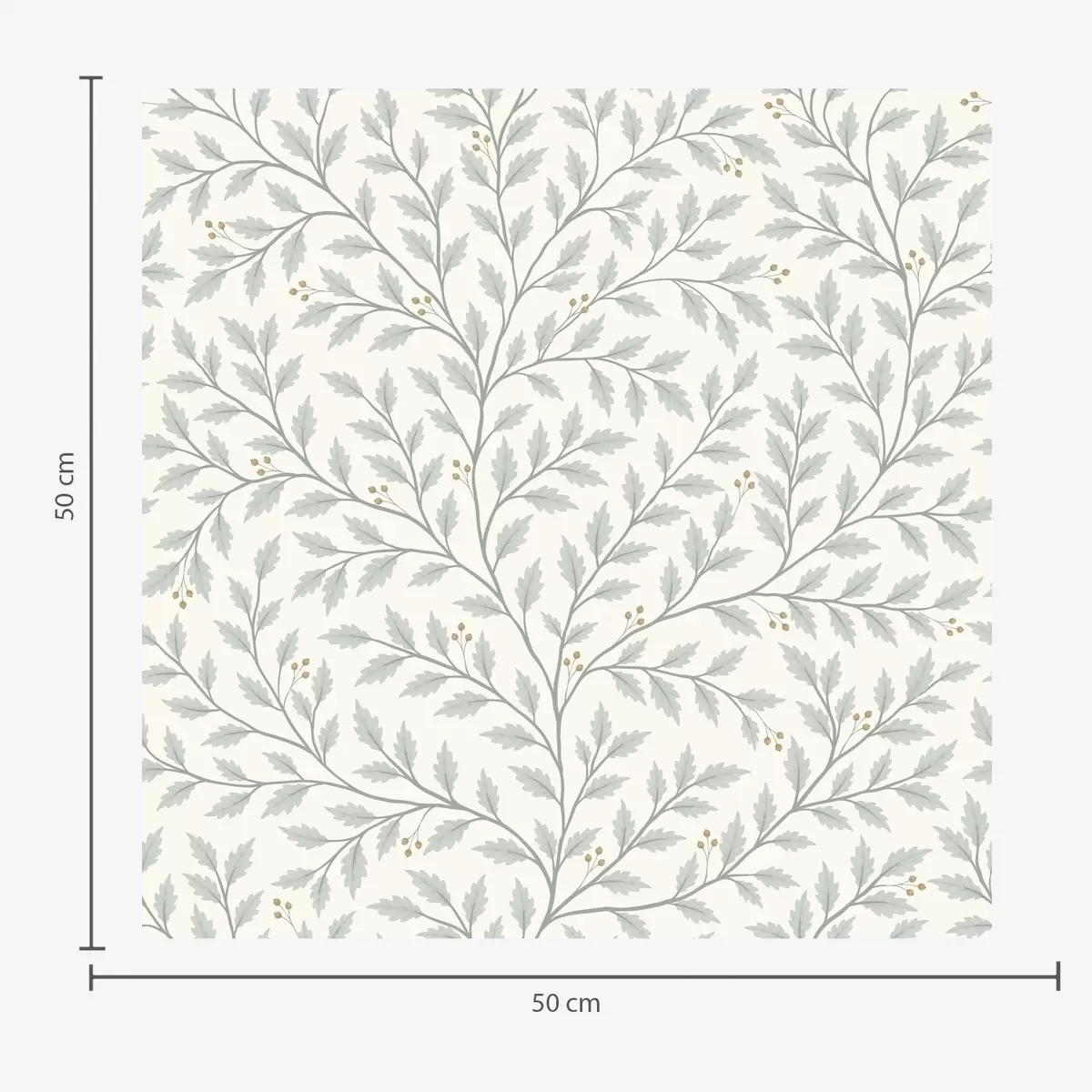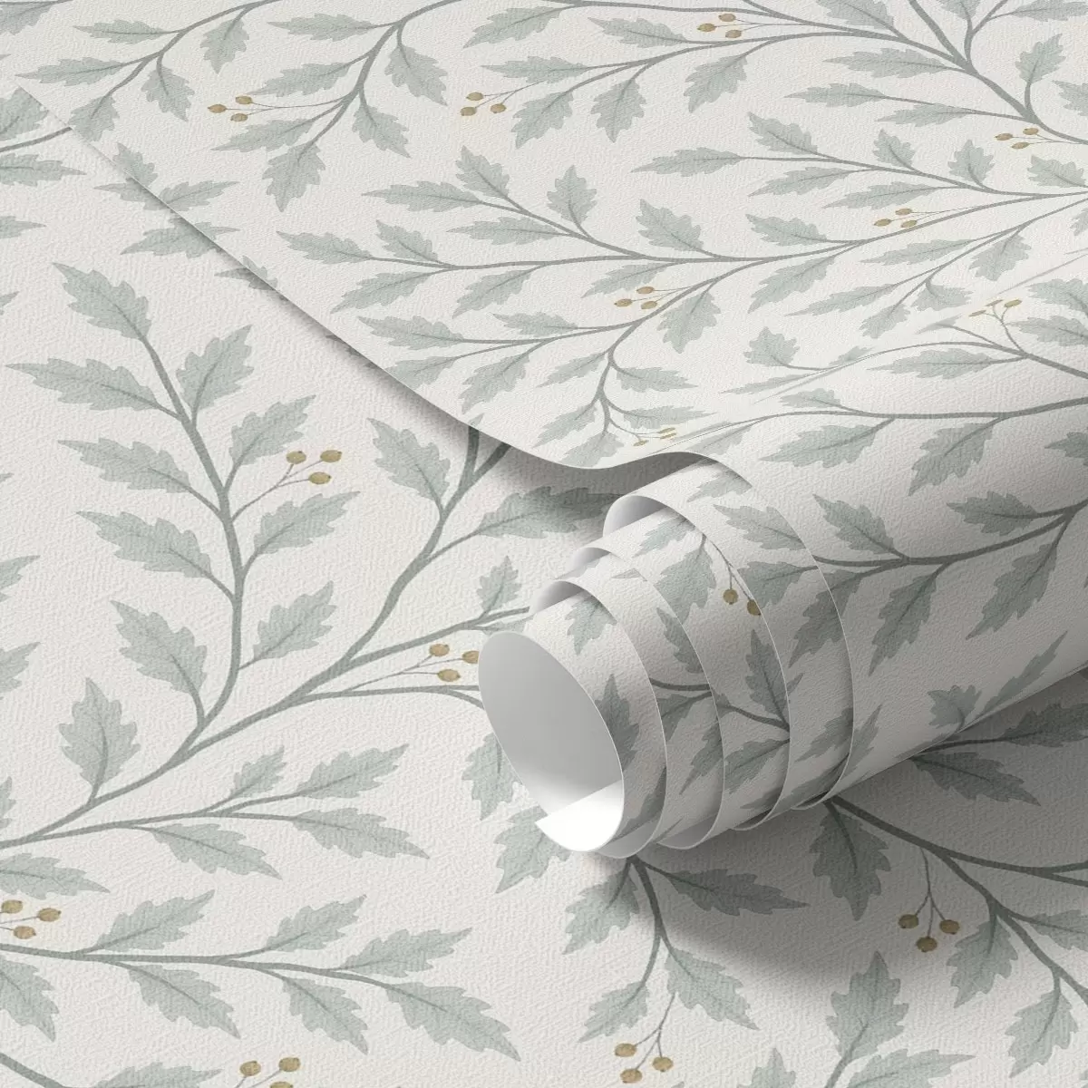 Wallpapers Branches with leaves and berries, light cream and sage No. a00783