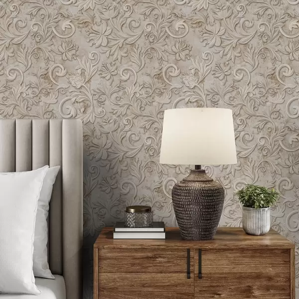 Wallpapers Stone relief with floral scrolls, vintage beige No. a00784