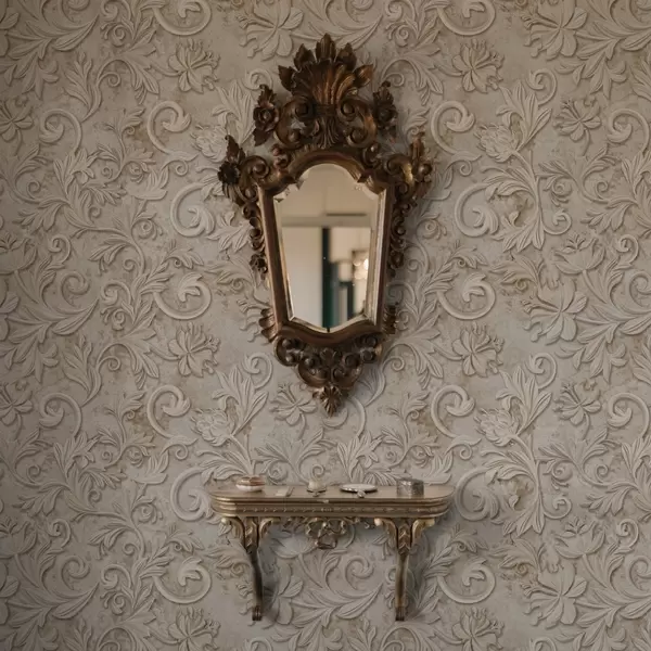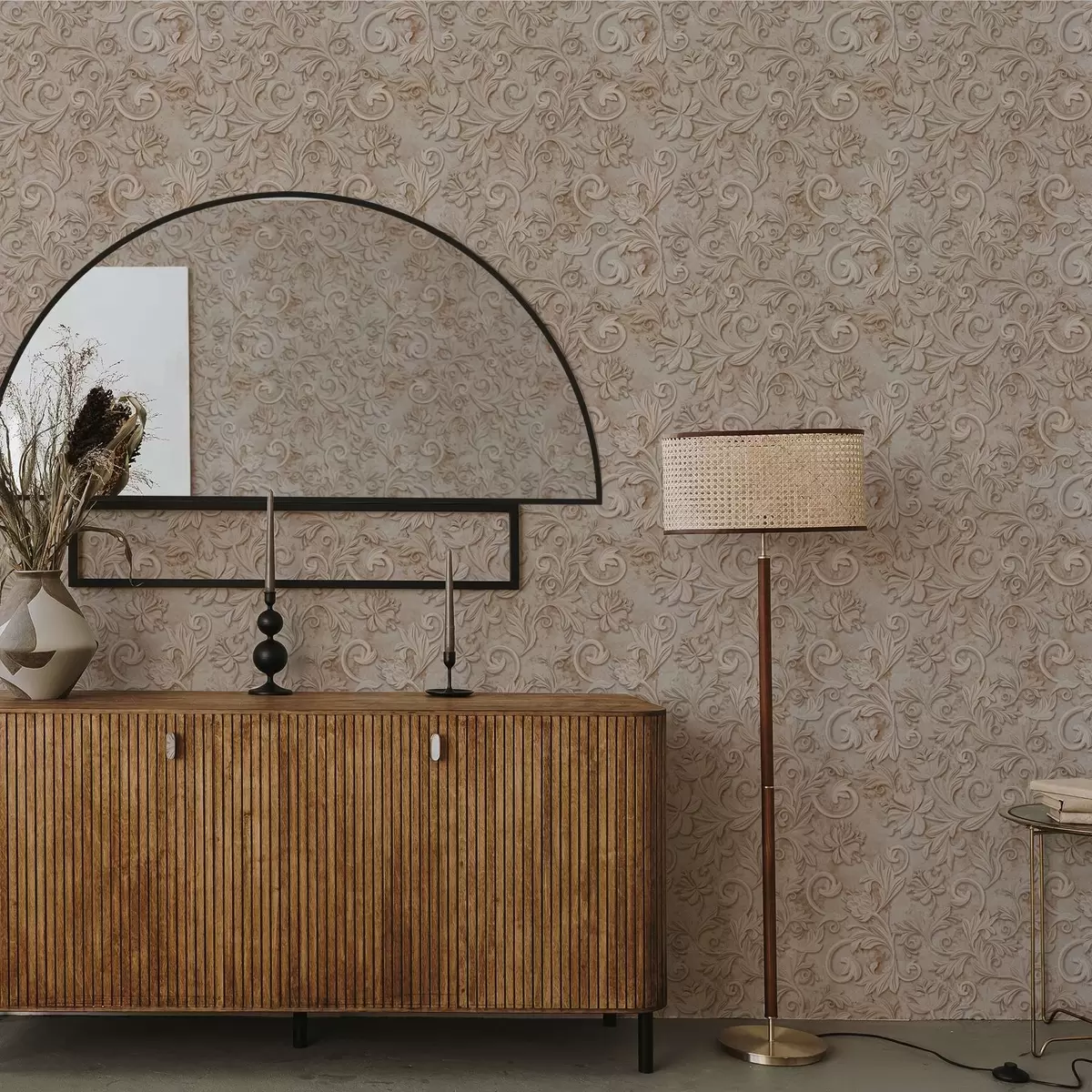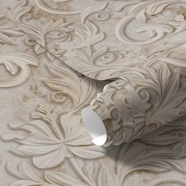 Wallpapers Stone relief with floral scrolls, vintage beige No. a00784