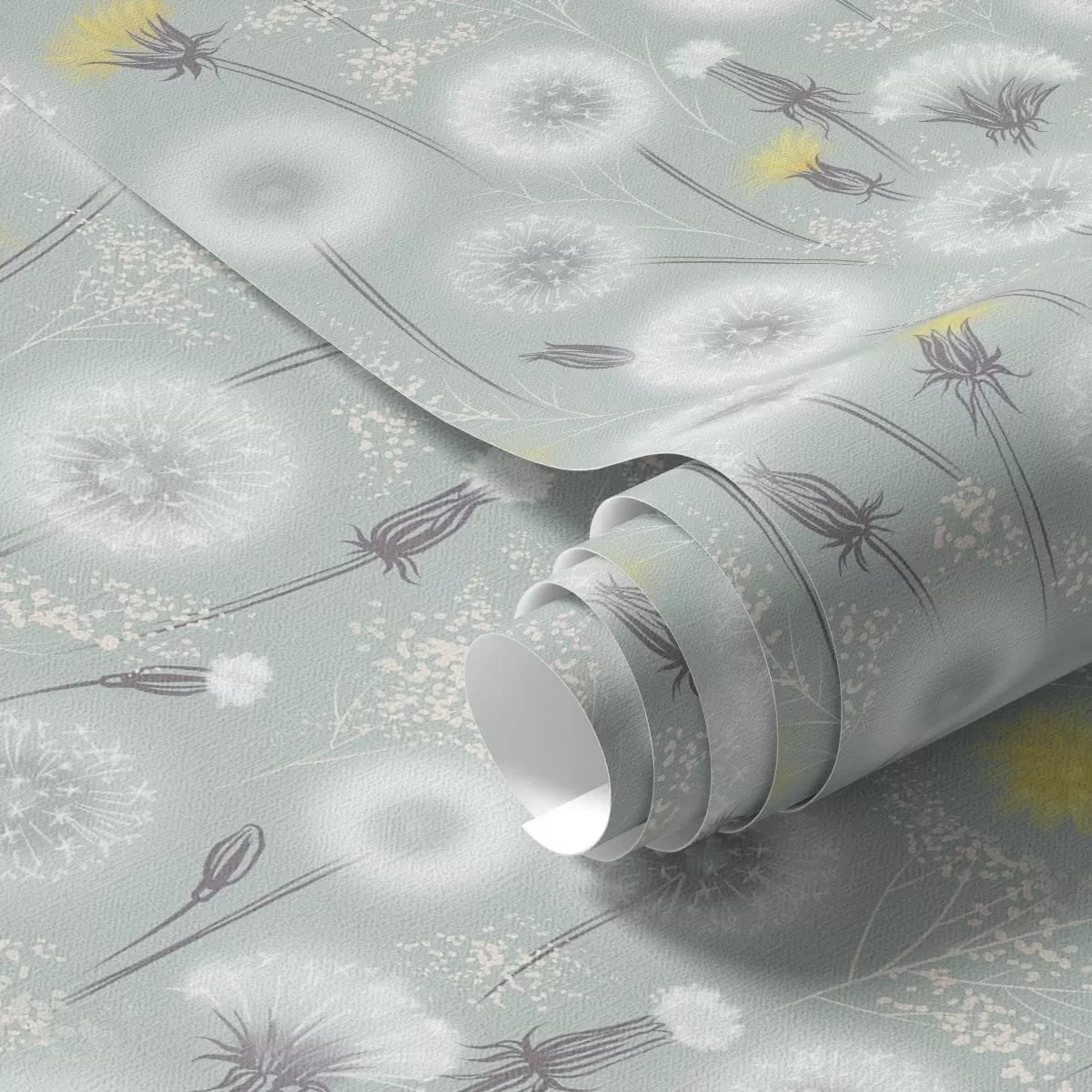 Wallpaper Fluffy dandelions and seeds on a mint background a00790
