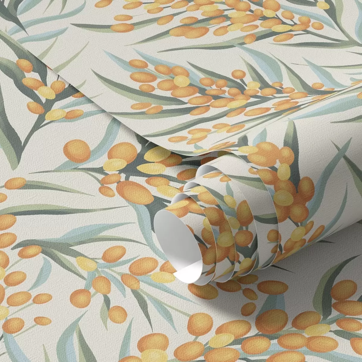 Wallpaper Sea buckthorn branches with orange berries, light background a00792
