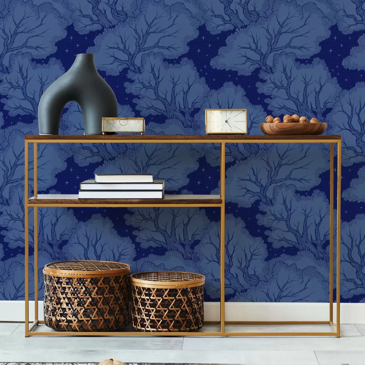 Wallpapers Silhouettes of trees under a starry sky in shades of blue No. a00798