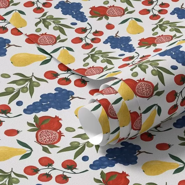Wallpaper Juicy fruits: pomegranates, grapes, pears on a white background a00801