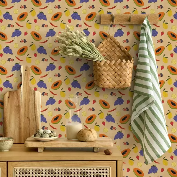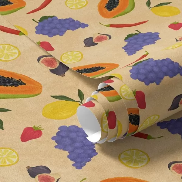 Wallpaper Papaya, citrus, and berries on a rich warm background a00803v1