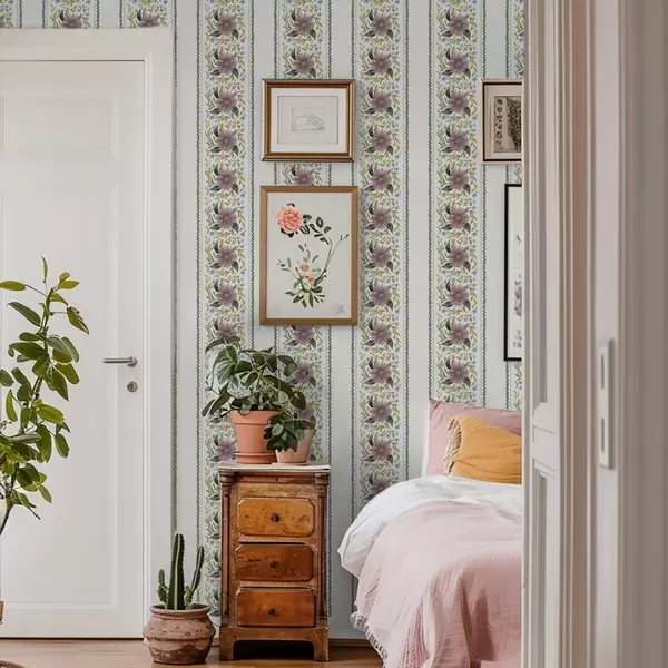 Wallpapers Vertical floral stripes in lilac-blue tones No. a00809