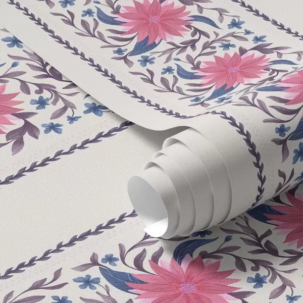 Wallpaper Vertical floral stripes in pink-purple tones a00810