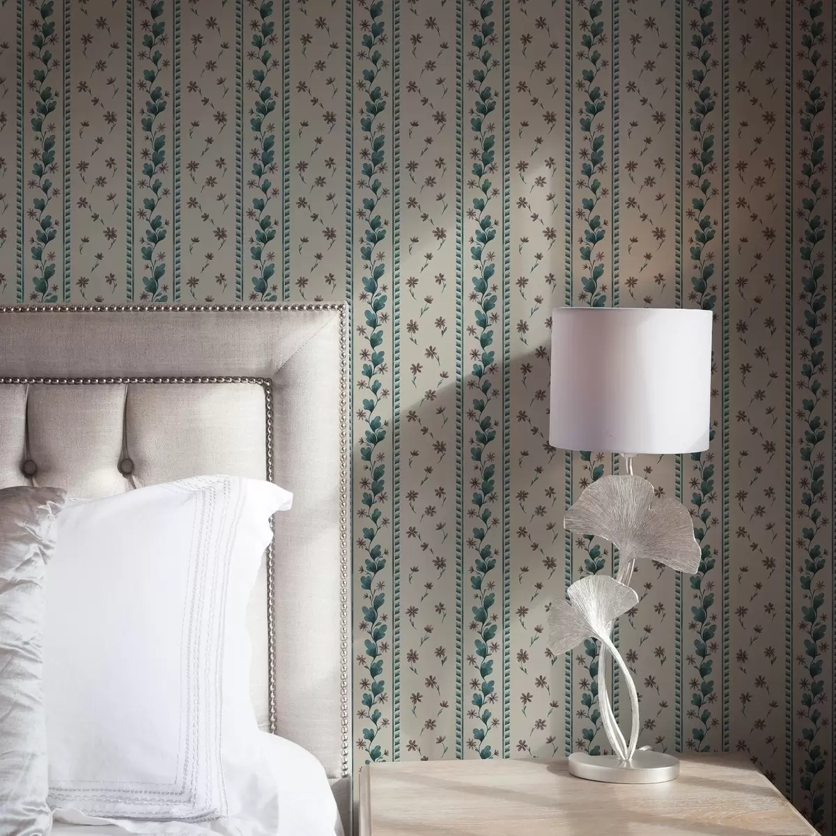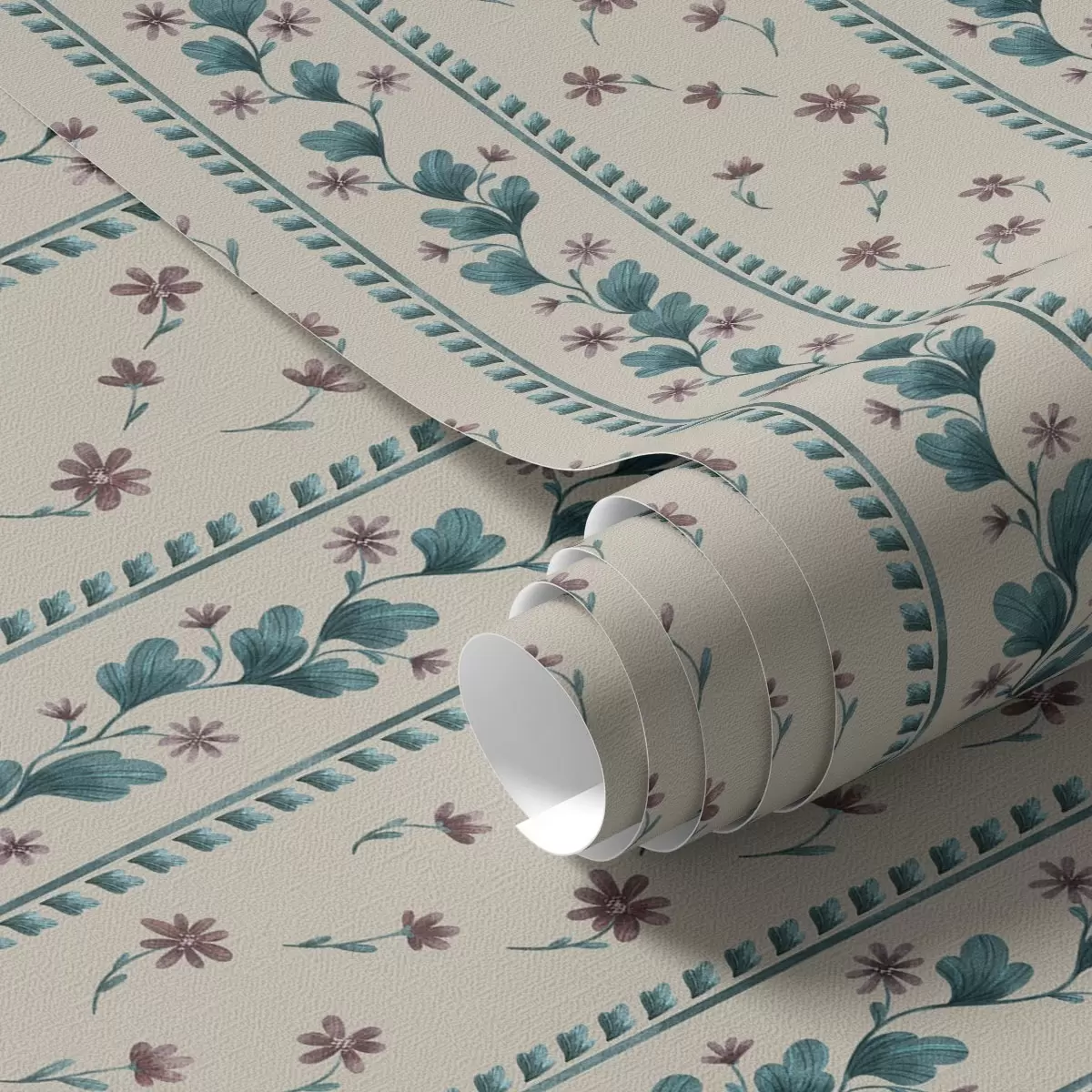 Wallpapers Vertical floral stripes in blue-brown tones No. a00811v1