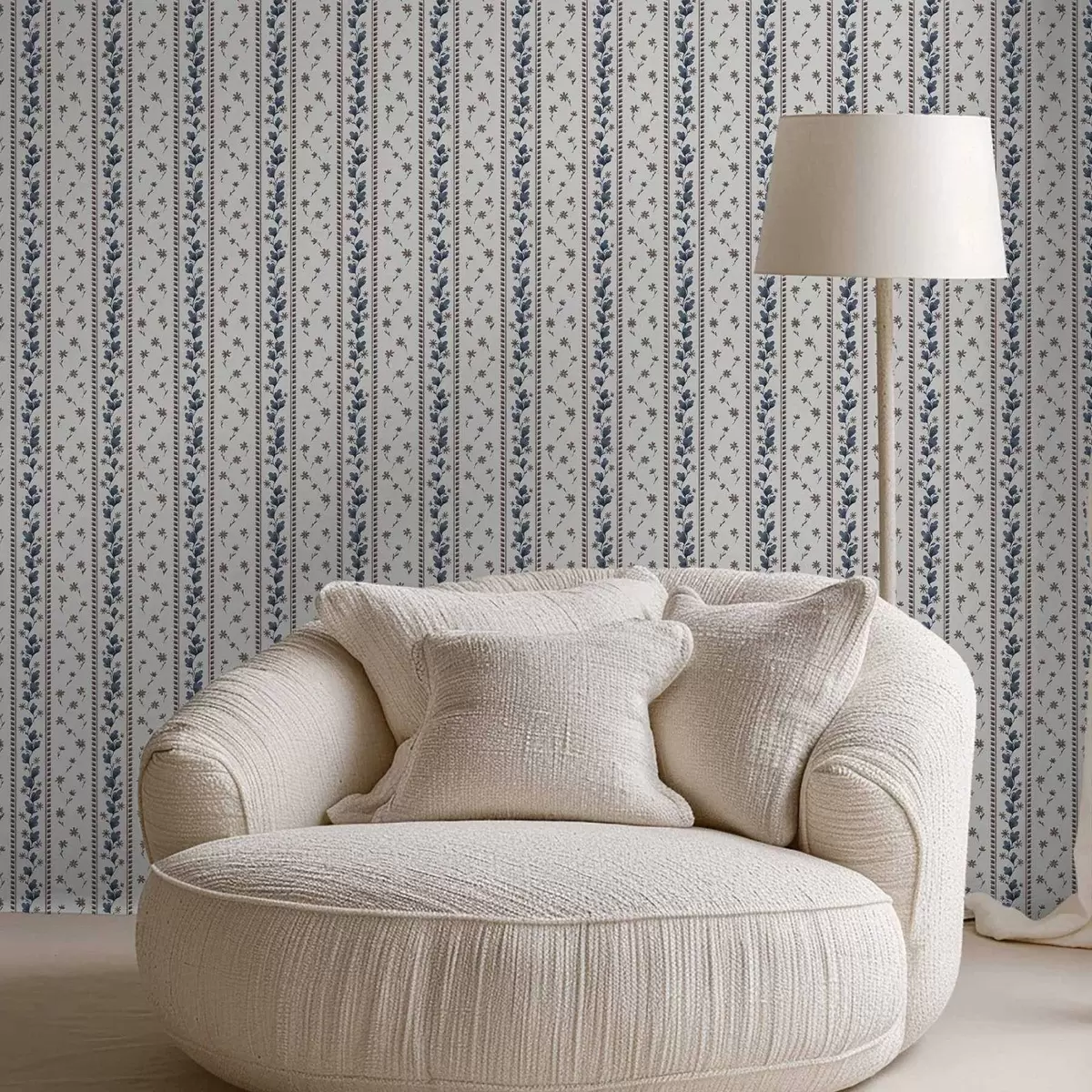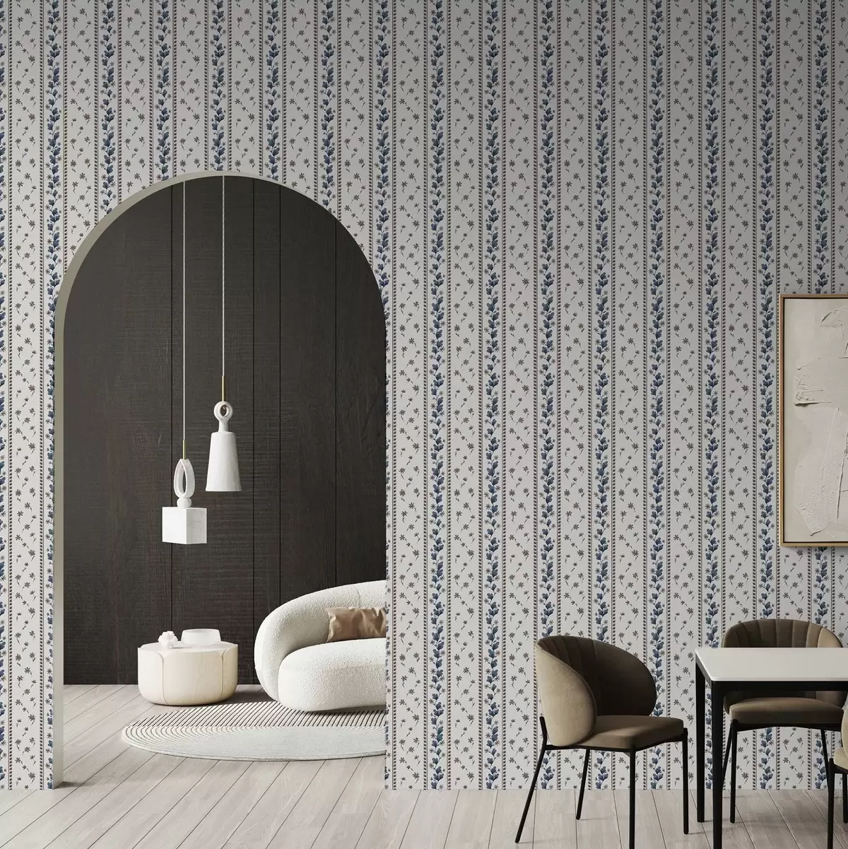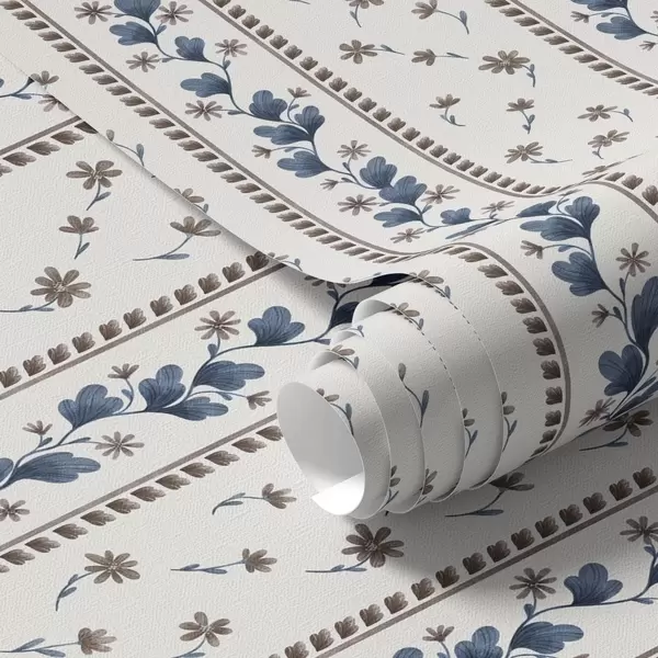 Wallpapers Vertical floral stripes in blue-brown hues No. a00811v2