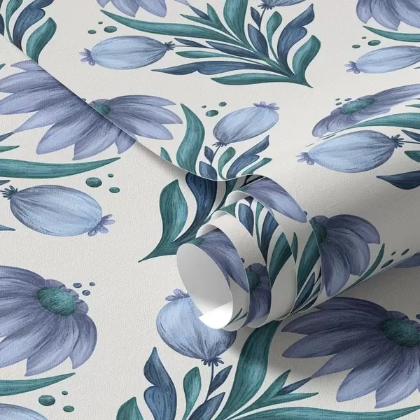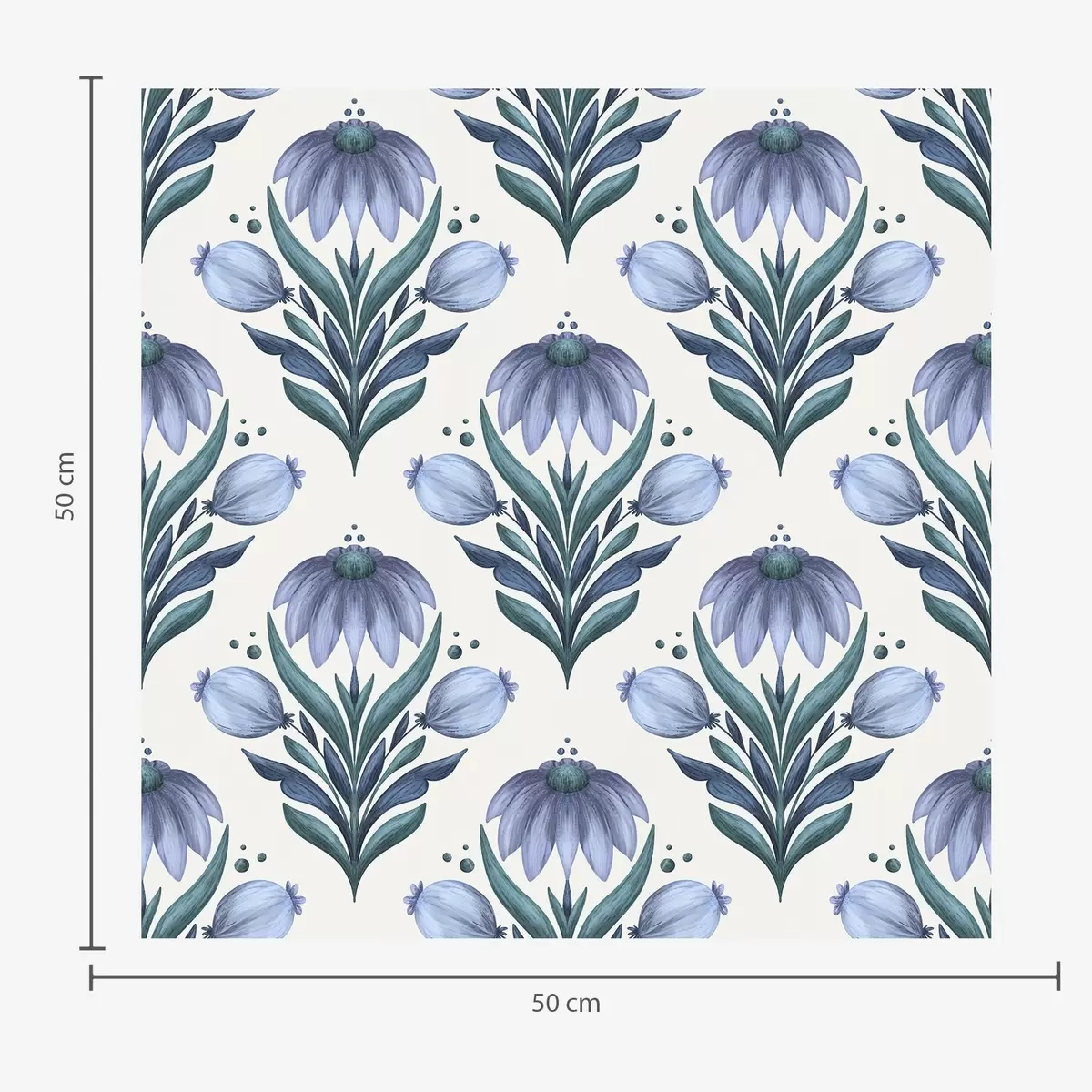 Wallpapers Symmetrical floral ornament in blue-white shades No. a00812v2