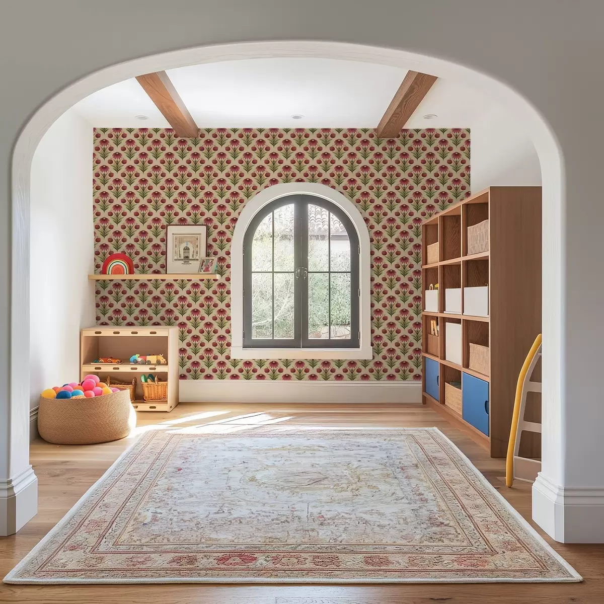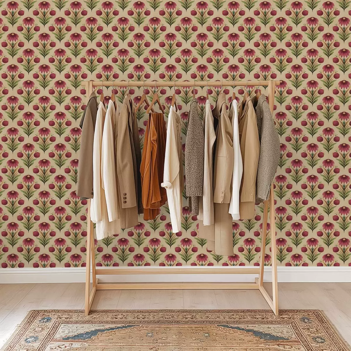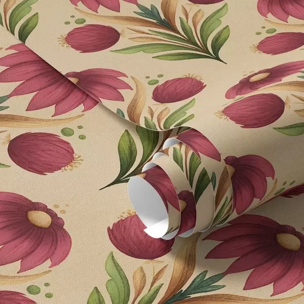 Wallpapers Symmetrical floral ornament on warm beige background No. a00812v6