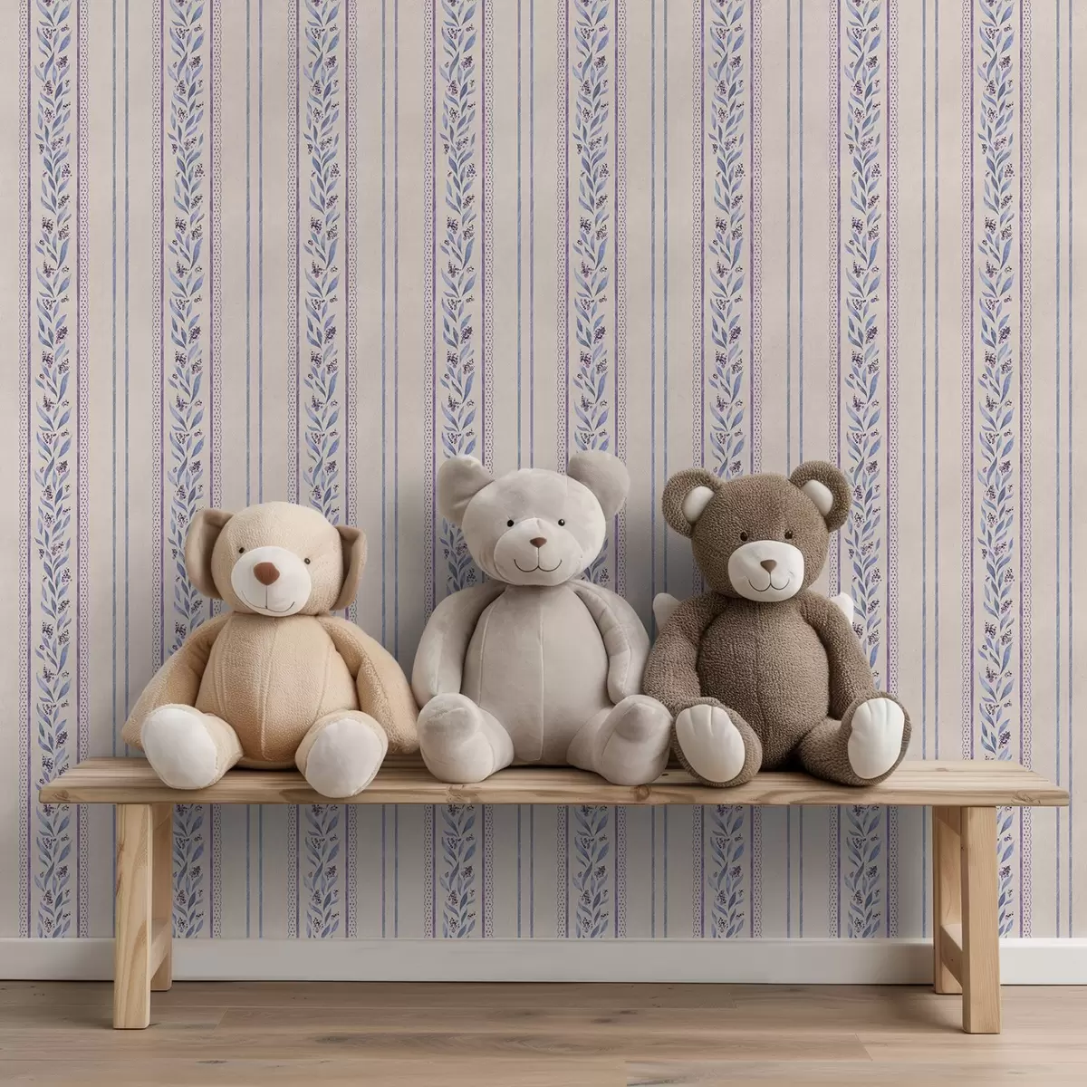 Wallpapers Vertical stripes with lavender vignettes, warm beige No. a00813
