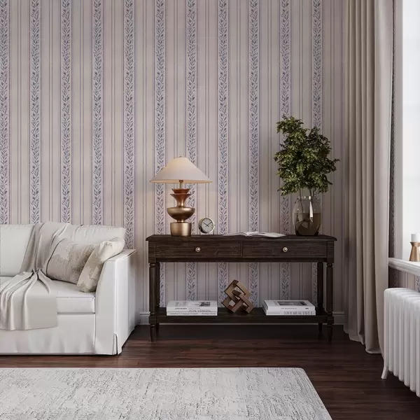Wallpapers Vertical stripes with lavender vignettes, warm beige No. a00813