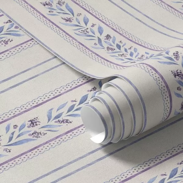 Wallpapers Vertical stripes with lavender garlands, beige background No. a00813v1