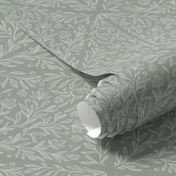 Wallpapers Botanical damask on mint-olive background No. a00815