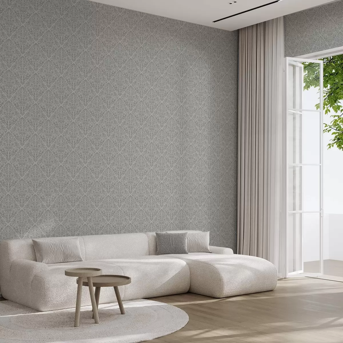 Wallpaper Botanical damask in light gray with soft outline a00815v2