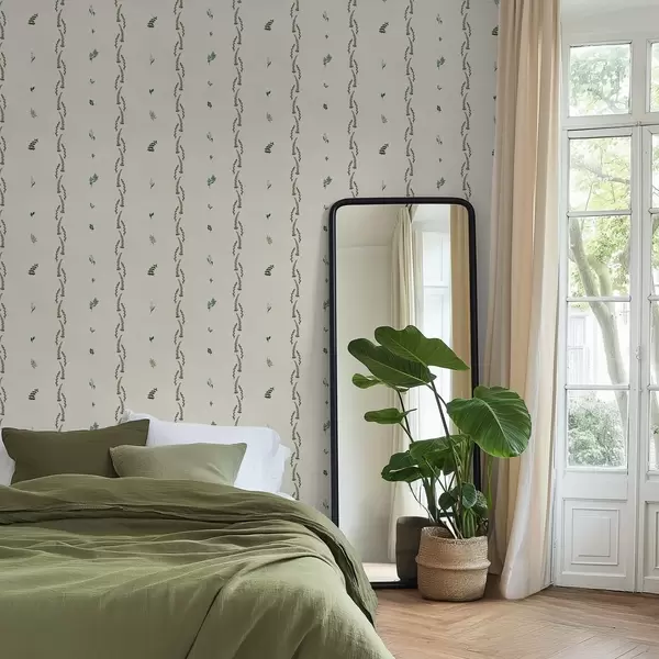 Wallpapers Sparse green shoots in a vertical rhythm, cream ground No. a00818