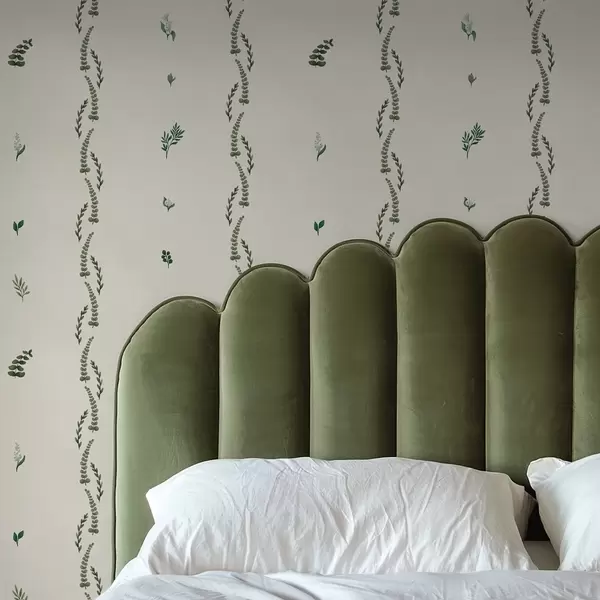 Wallpapers Sparse green shoots in a vertical rhythm, cream ground No. a00818
