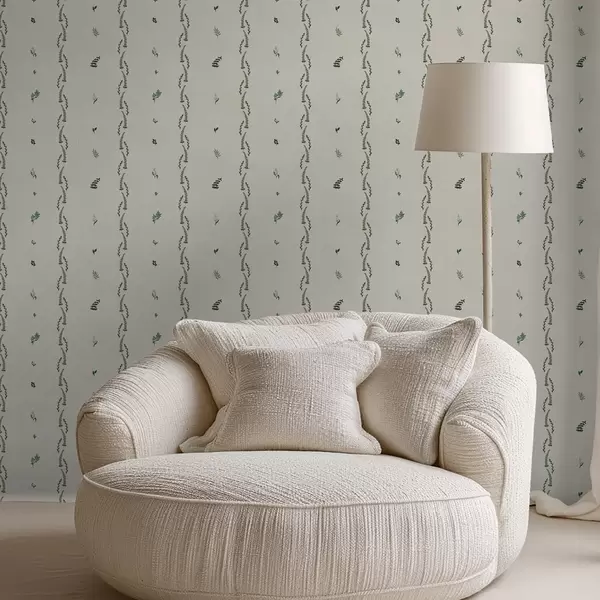 Wallpapers Sparse green shoots in a vertical rhythm, cream ground No. a00818