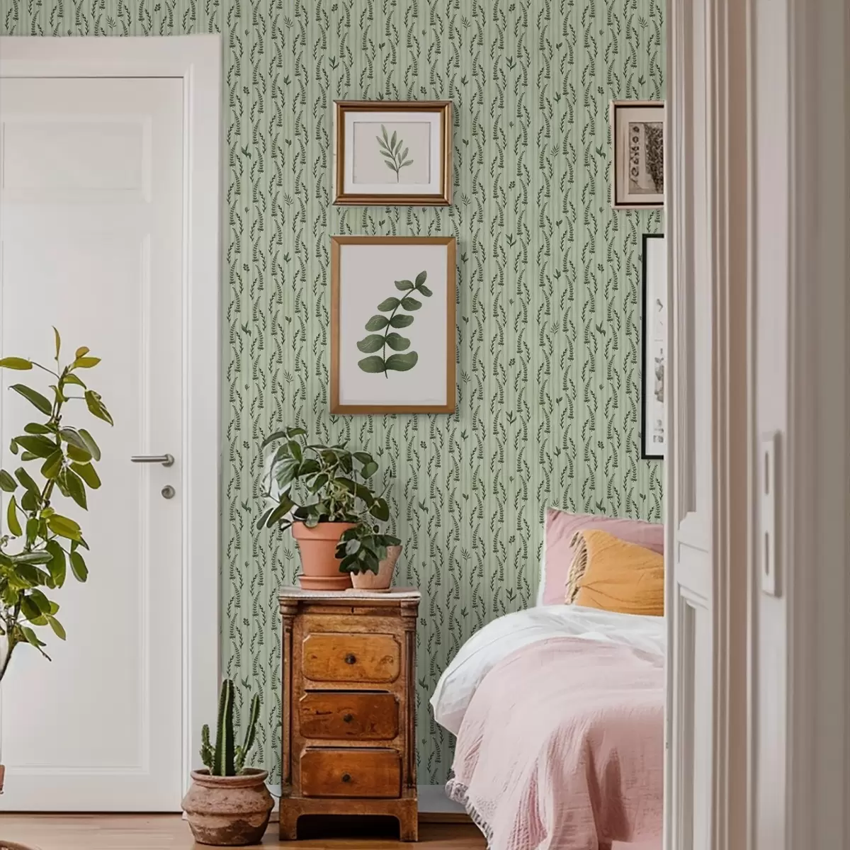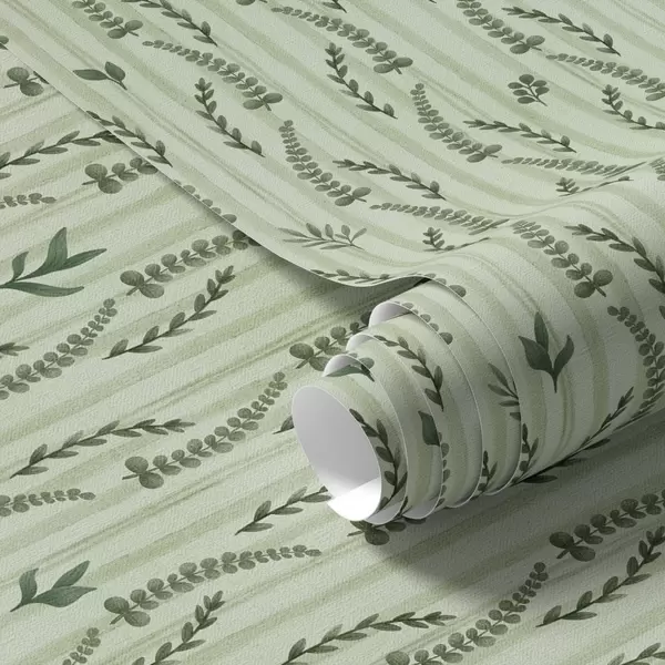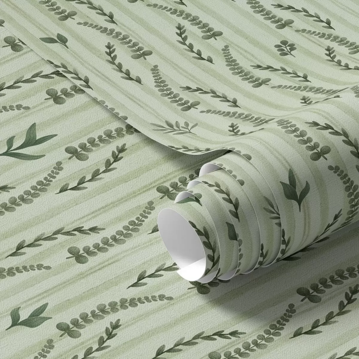 Wallpaper Dense green grasses and shoots on mint with stripes a00819