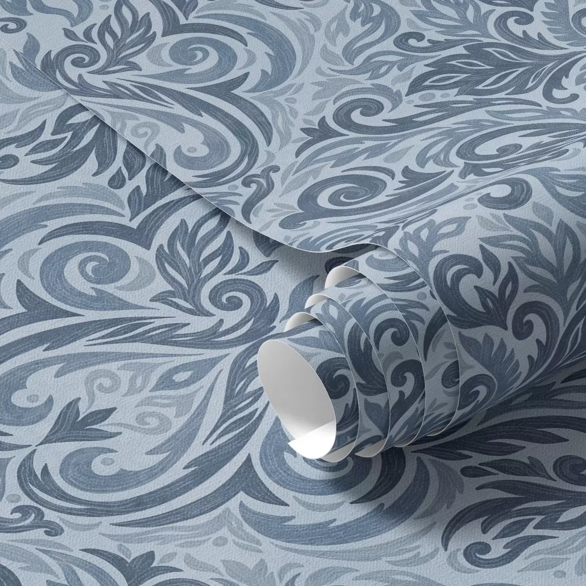 Wallpapers Damask in cool blue tones, stronger contrast No. a00826v2