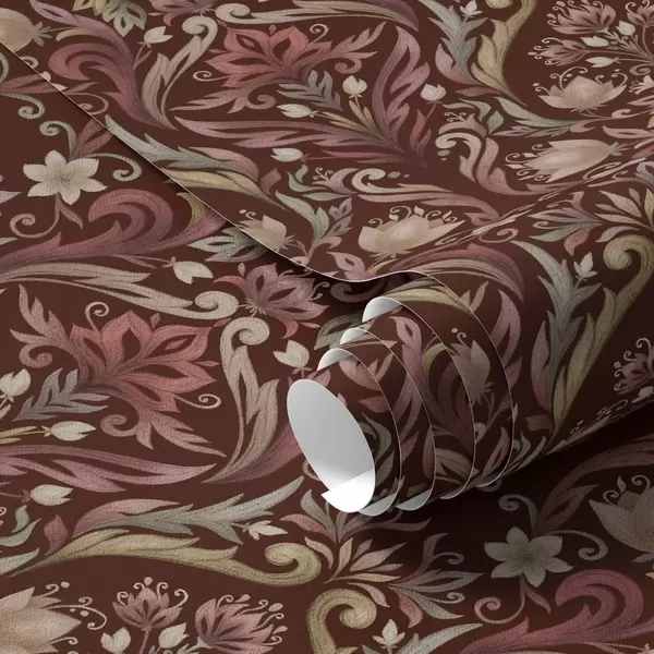 Wallpapers Tulip ornament, rich burgundy background No. a00827v2