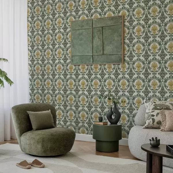 Wallpapers Damask with green scrolls on a light ground No. a00828v1