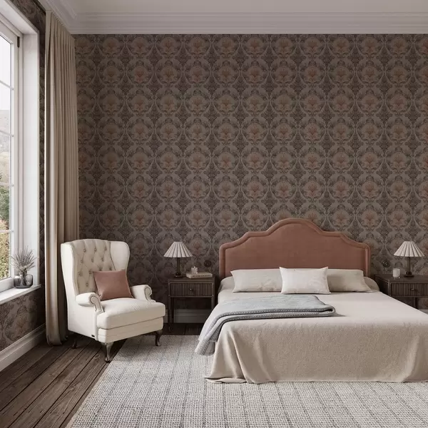 Wallpapers Damask in brown–terracotta palette, warm gray background No. a00828v2