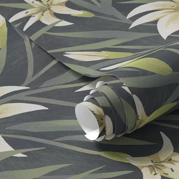 Wallpapers Cream lilies with leaves on dark background No. a00837v1
