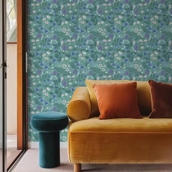 Wallpapers Wildflowers and berries on soft mint background No. a00849