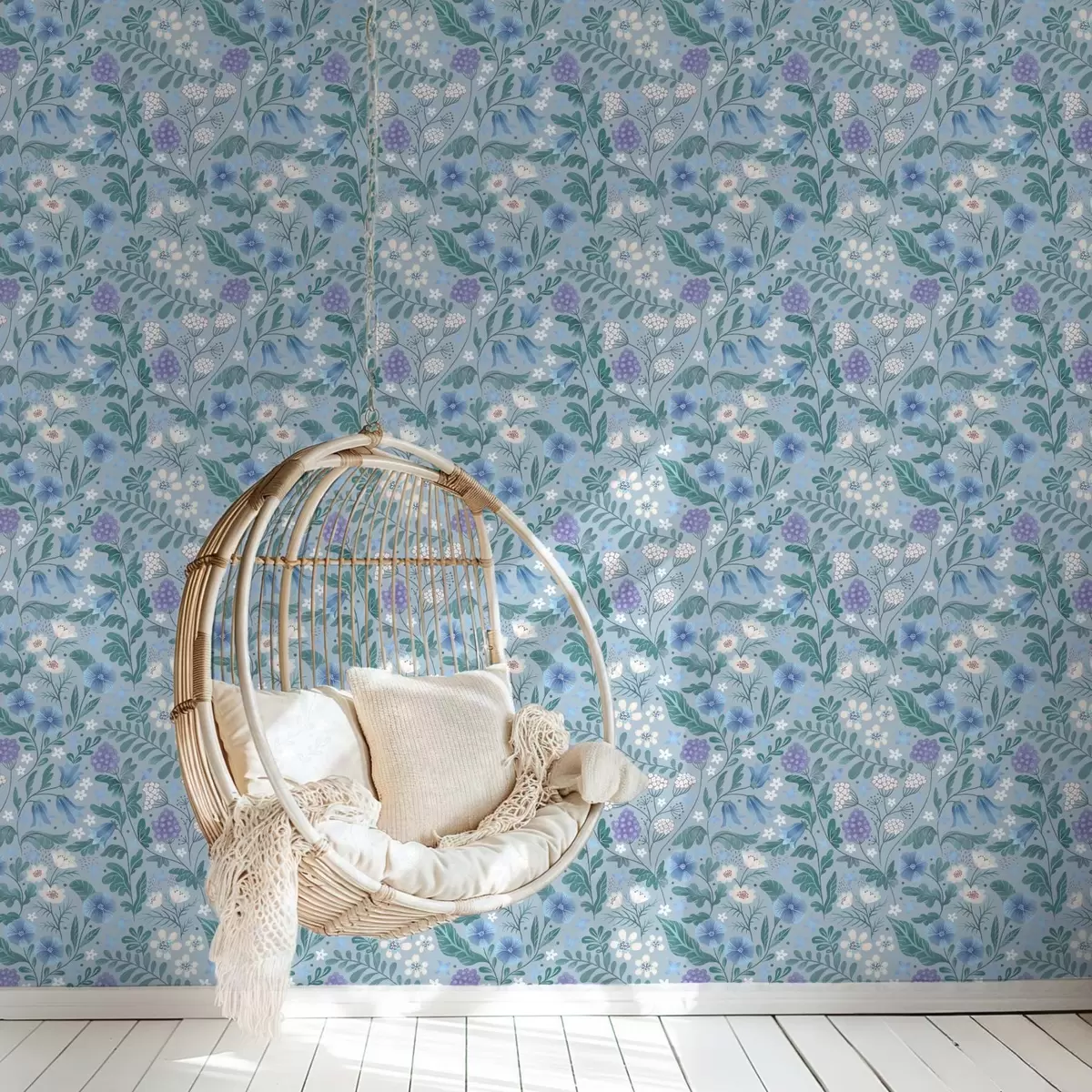 Wallpapers Wildflowers and berries on gray-blue background No. a00849v1