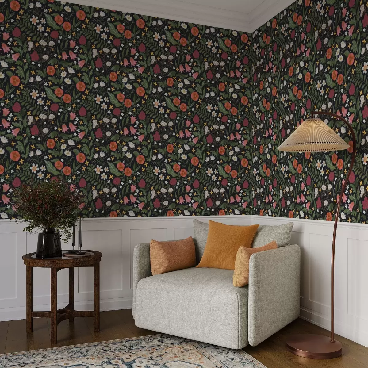Wallpapers Wildflowers and berries on deep black background No. a00849v3