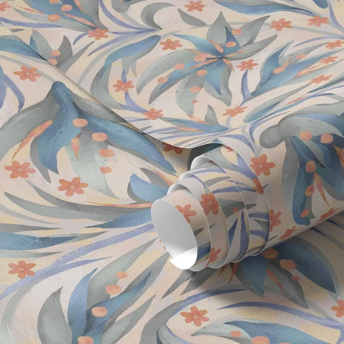 Wallpapers Abstract blue foliage with coral flowers No. a00852