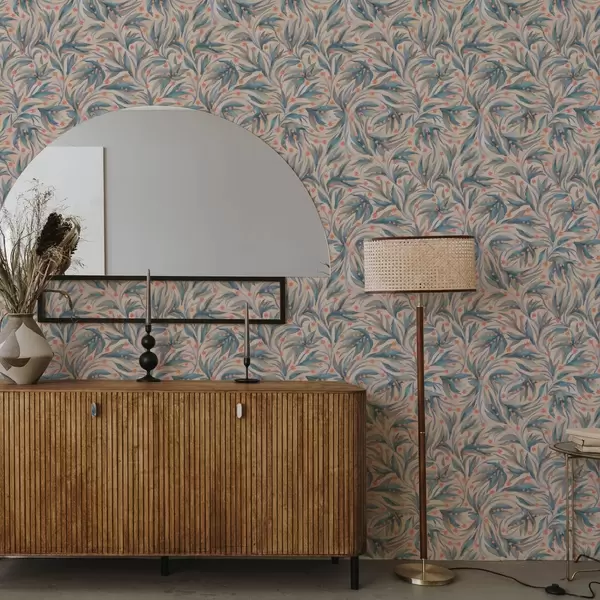 Wallpapers Abstract blue foliage with coral flowers No. a00852