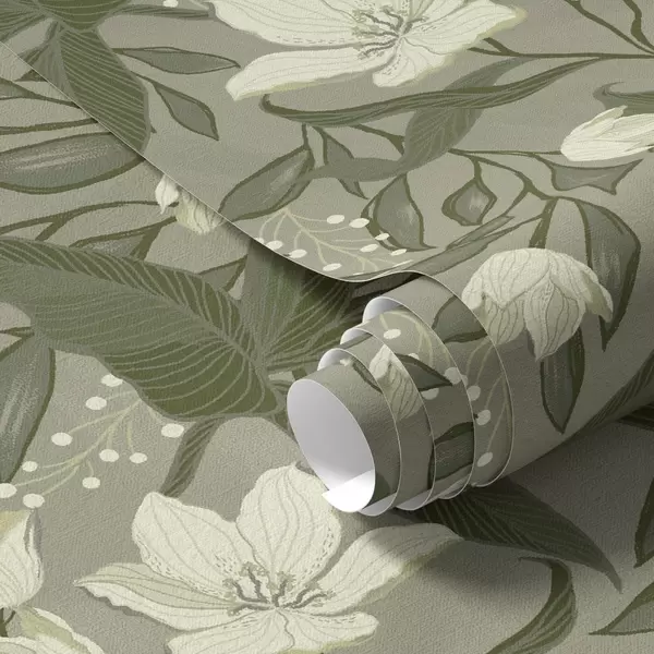 Wallpapers Pale lilies and foliage on gray-olive No. a00854